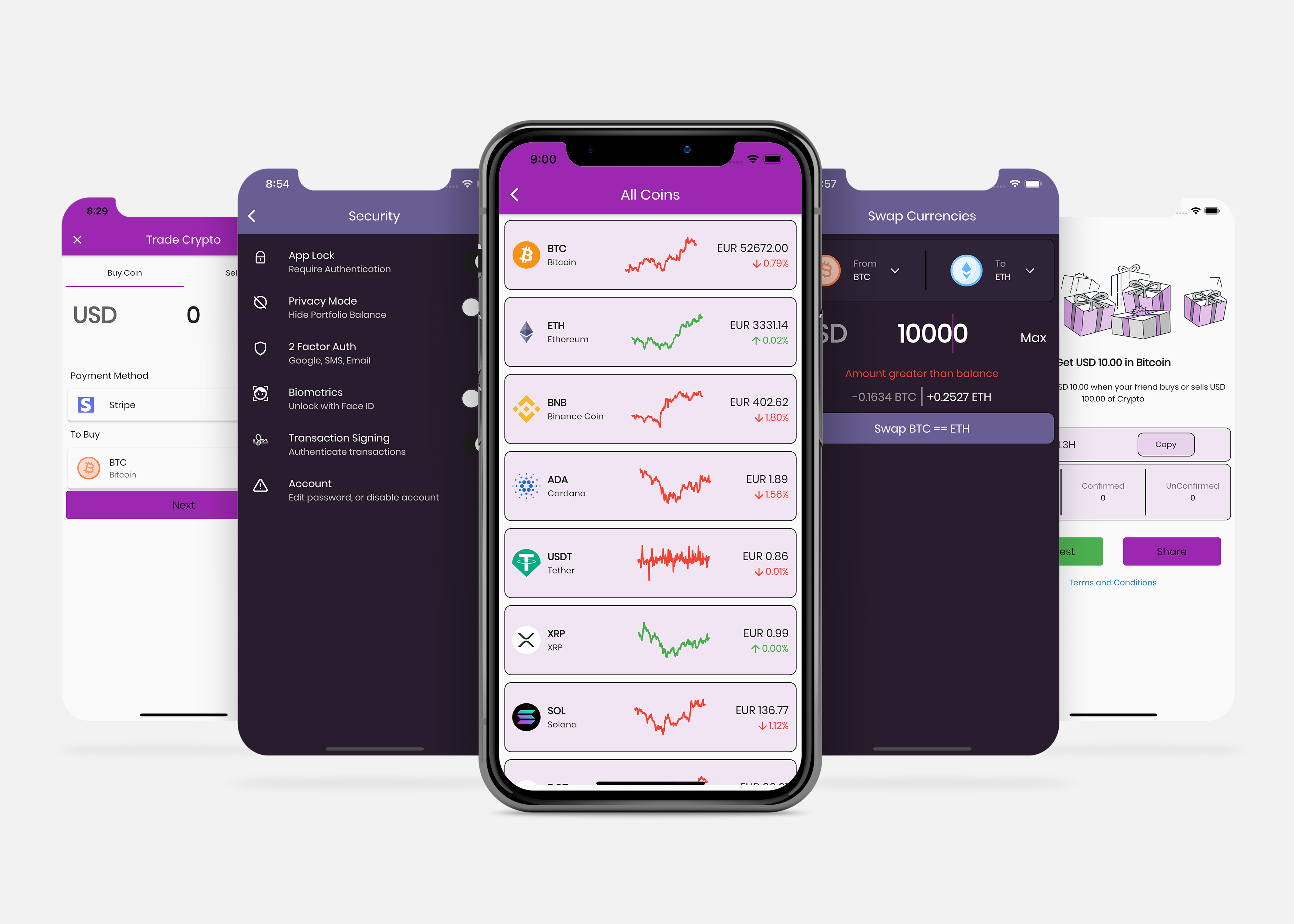 Kryptonia was built with security in mind, hence it offers App Lock (Fingerprint, FaceId and passcodes), too many attempts lock out for passcode and login, privacy mode to hide balance, ability to disable account in case of a compromise, transaction signing etc.